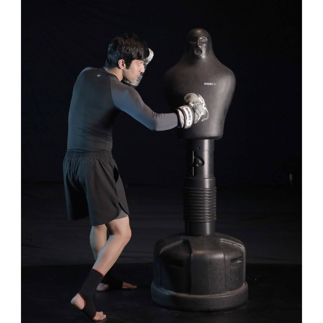 Invincible adjustable standing man bag for boxing offers the largest kicking and punching surface on the market.