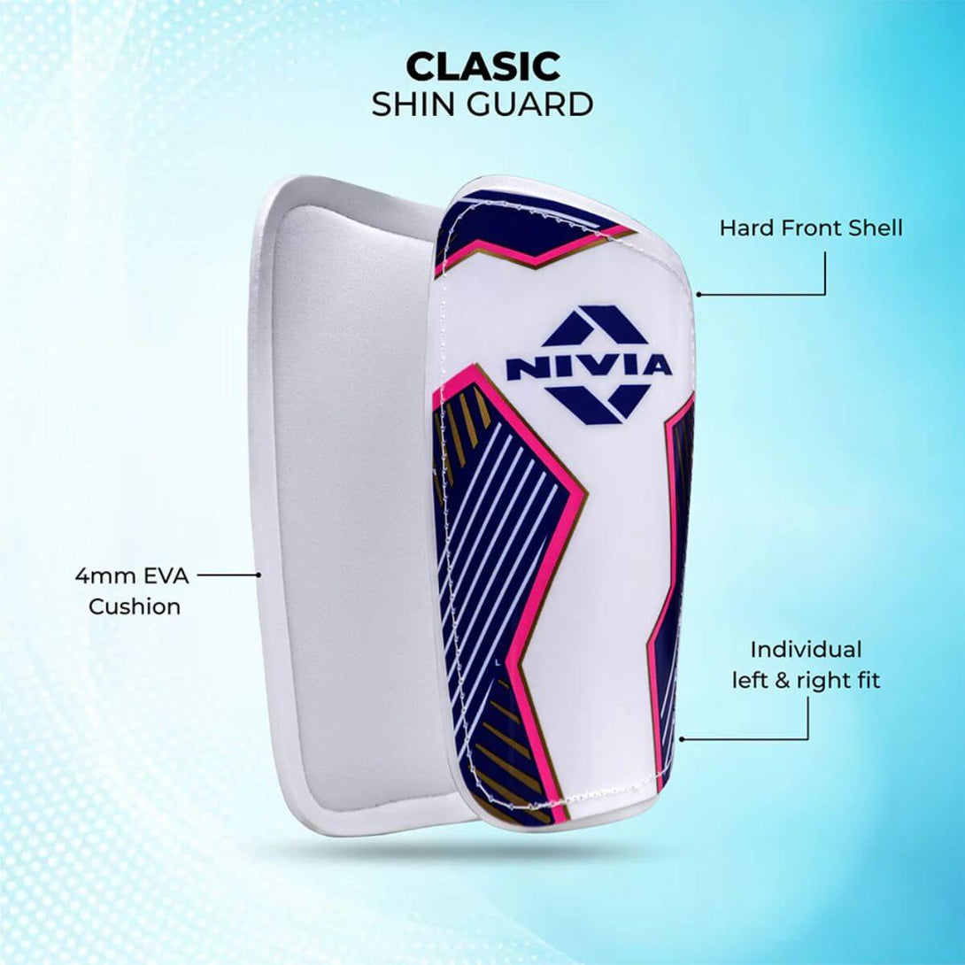 Step onto the field with confidence wearing the Nivia Classic Shin Guard with sleeve, designed for athletes who demand superior protection without compromising on comfort. Featuring an anatomical left and right design, these shin guards contour perfectly to your legs, ensuring a snug fit that stays in place during every kick, sprint, and tackle. The EVA foam lining absorbs impact, allowing you to focus on your game instead of worrying about injuries. With a flexible hard shell, the Nivia Classic strikes the ideal balance between robust protection and ease of movement. The breathable, moisture-wicking knitted calf sleeve keeps your legs cool and dry, so you can play at your best for longer. Constructed to safeguard your soft tissues and bones from external impacts, these shin guards are not just gear; they're your partner in achieving success on the field.
