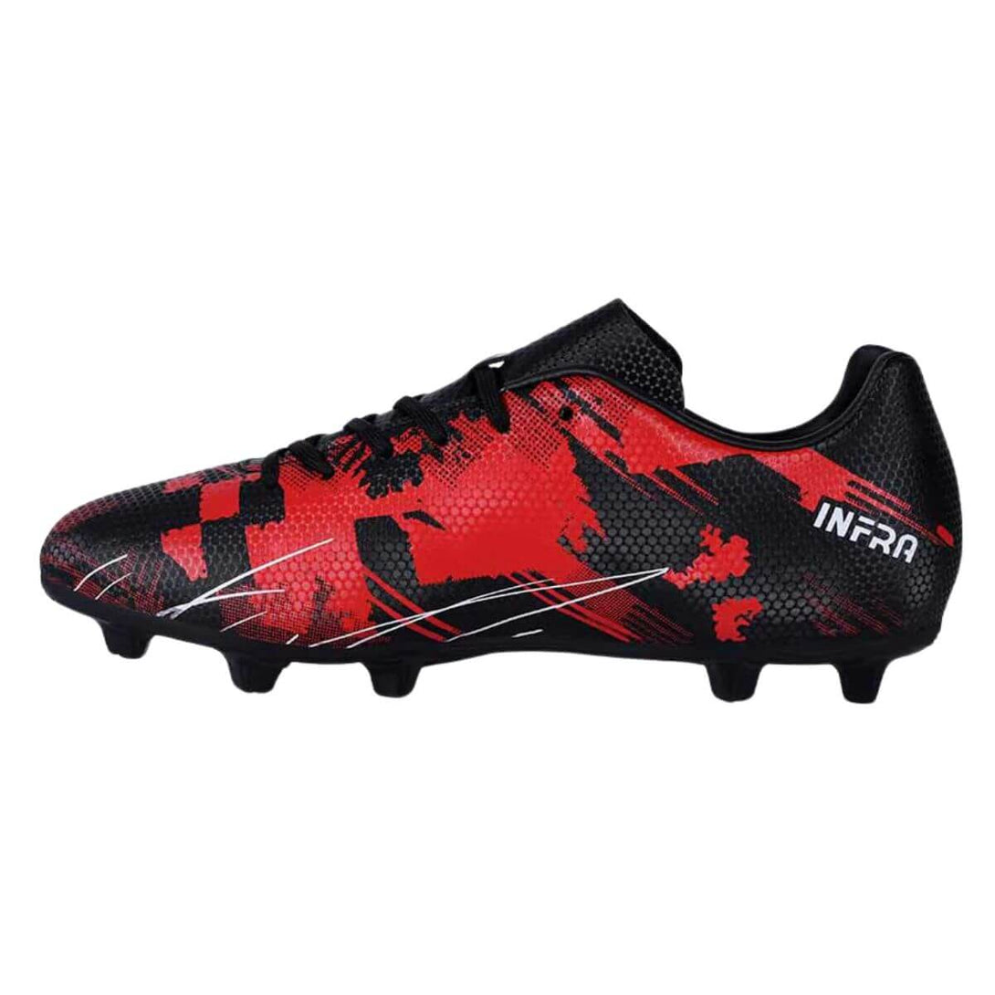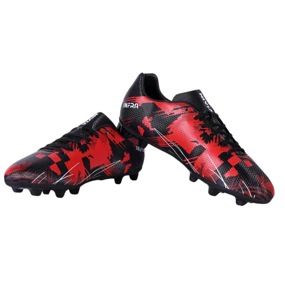 Step up your game with the Nivia Infra 2.0 boots. Designed with a contoured synthetic leather upper that conforms to your foot for exceptional control, these boots offer both style and function. The die-cut soft EVA sockliner adds extra cushioning, while the lightweight insole provides enhanced comfort and grip. Featuring a flexible PU sole with durable stitching, these boots ensure optimal performance and durability on hard and grassy surfaces. With a construction that reduces bulk and irritation, the Infra 2.0 boots mold to your foot, offering a personalized fit that supports your every move