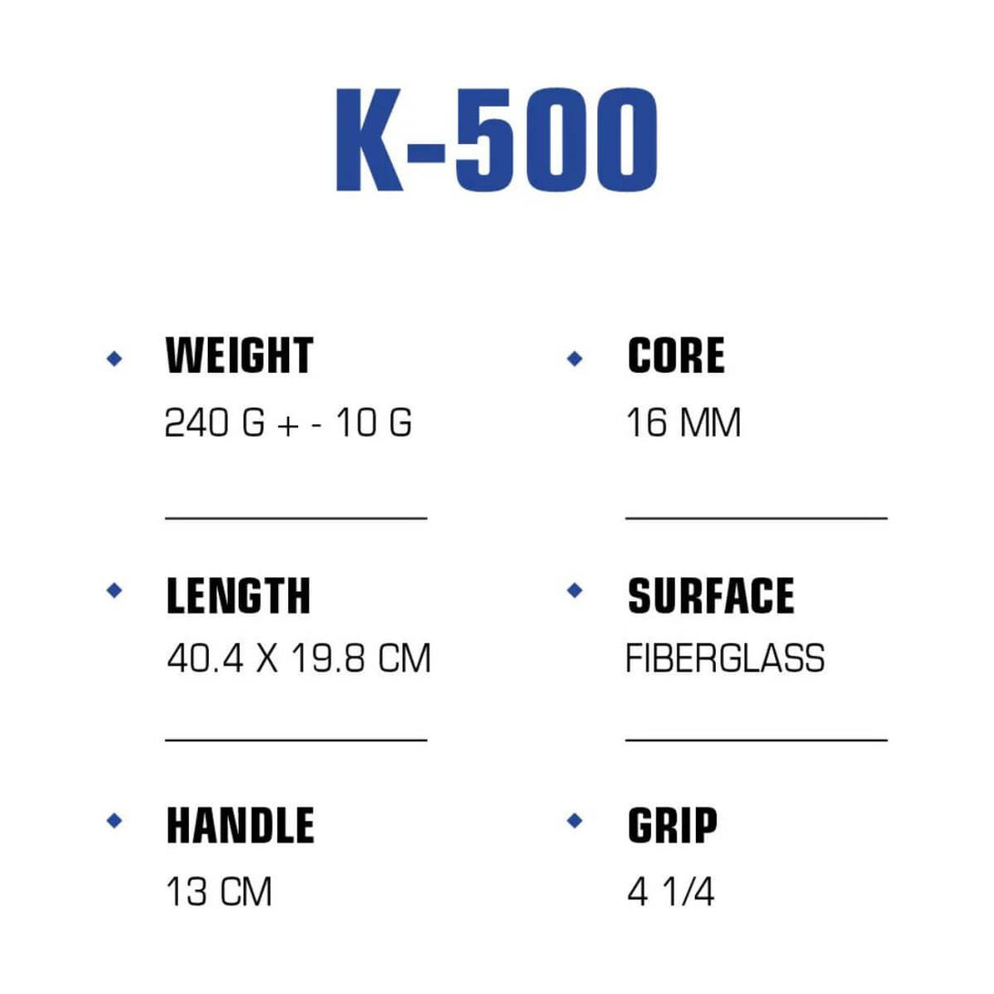 Your first paddle should build trust, not tension. The K-500 brings beginners into the game with confidence. A forgiving fiberglass surface helps stabilize each shot, while the soft 16mm core absorbs impact to protect your joints. Heavier than most, it adds natural power and steadiness—making it perfect for learning, building technique, and loving every rally.