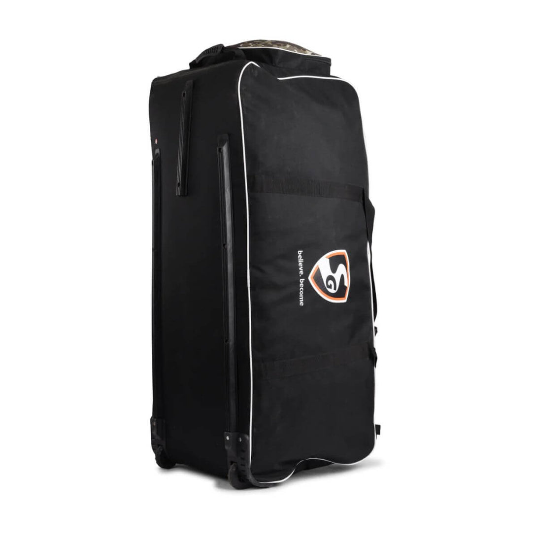 The SG Blazepak Holdall Wheelie Kit Bag is the perfect choice for cricketers who need a spacious, durable, and easy-to-move solution for carrying all their gear. Made from water-resistant, premium fabric, this kit bag is designed to withstand regular use and tough conditions. It features an external pocket on the carry-handle side for convenient storage of accessories and SG customized zips and runners for added durability. The ‘C’ shape opening ensures easy access to the main compartment, while the two large wheels provide excellent traction and control. With a fabricated grip handle supported by mesh for comfort and special bartack stitches for extra strength, this kit bag combines practicality with durability.
