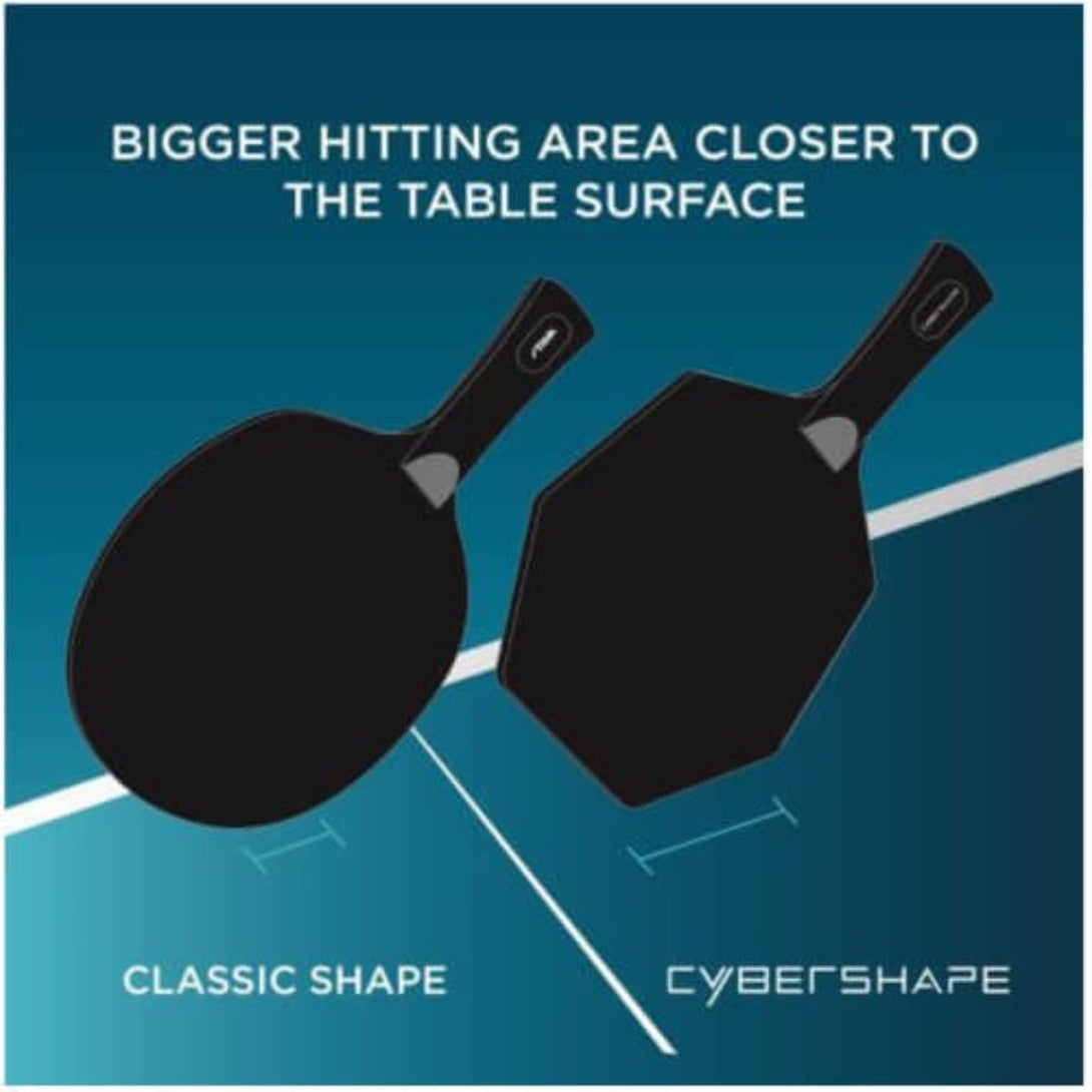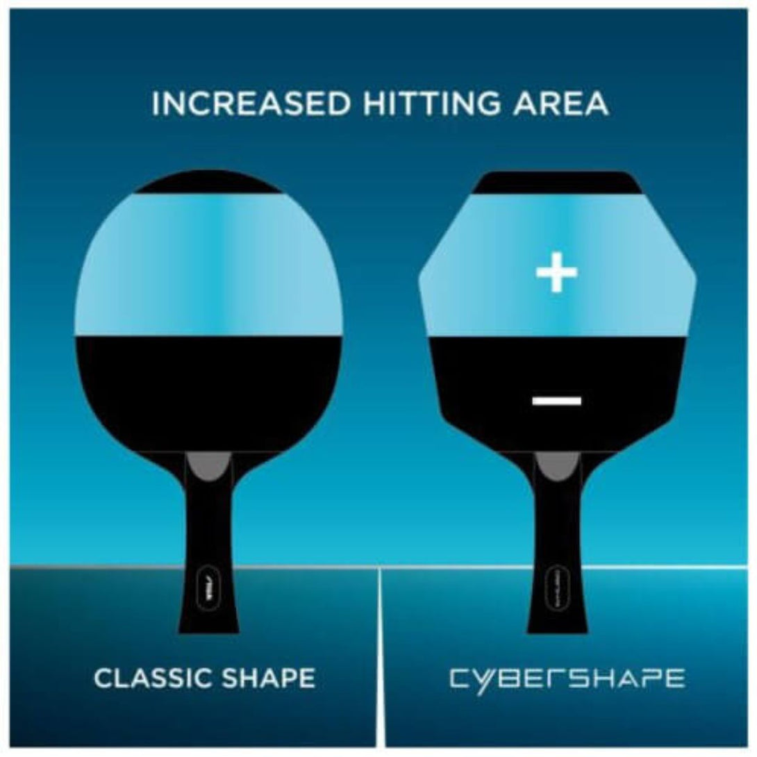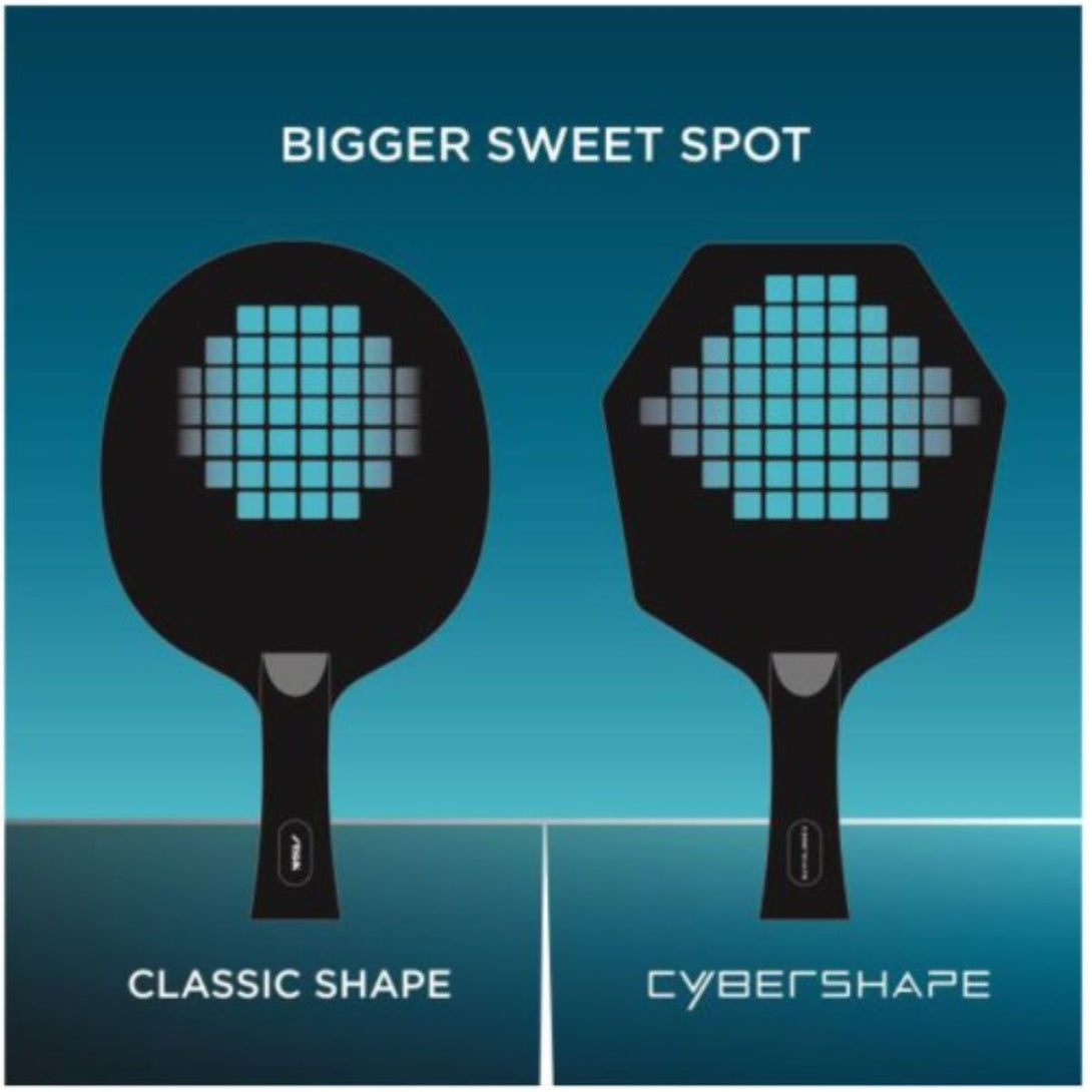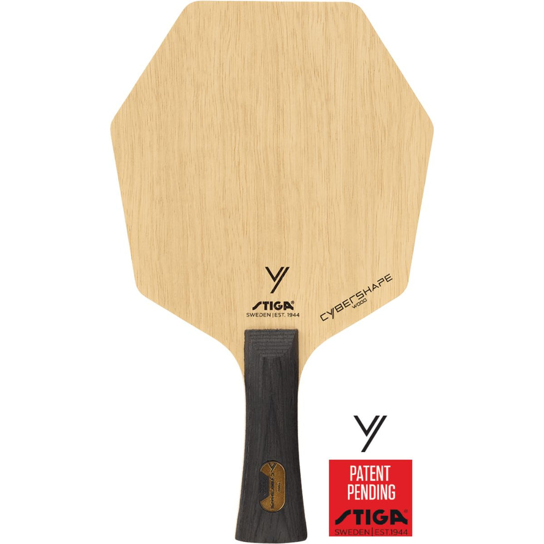 The revolutionary shape that took Truls Möregårdh to the 2021 World Cup final. Cybershape Wood is a factory-lacquered, offensive blade that is made up of five exclusive wooden layers and developed to work optimally with a wide range of STIGA's table tennis rubbers. An offensive table tennis blade with a revolutionary, patent pending and design-protected shape that provides an optimised hitting area. The symbiosis of exclusive materials, the unique Cybershape design, result in a flexible blade that fits several different play styles. Developed together with STIGA professional players to work optimally with a wide range of STIGA's table tennis rubbers. According to measurements from tests carried out in collaboration with KTH, Cybershape has a larger sweet spot placed higher up on the blade than a standard shape which gives more power in your strokes without losing control of the ball. Handles are made of the top-quality Italian wood and have a surface roughness that ensures an optimal gripping surface without the handle feeling slippery.