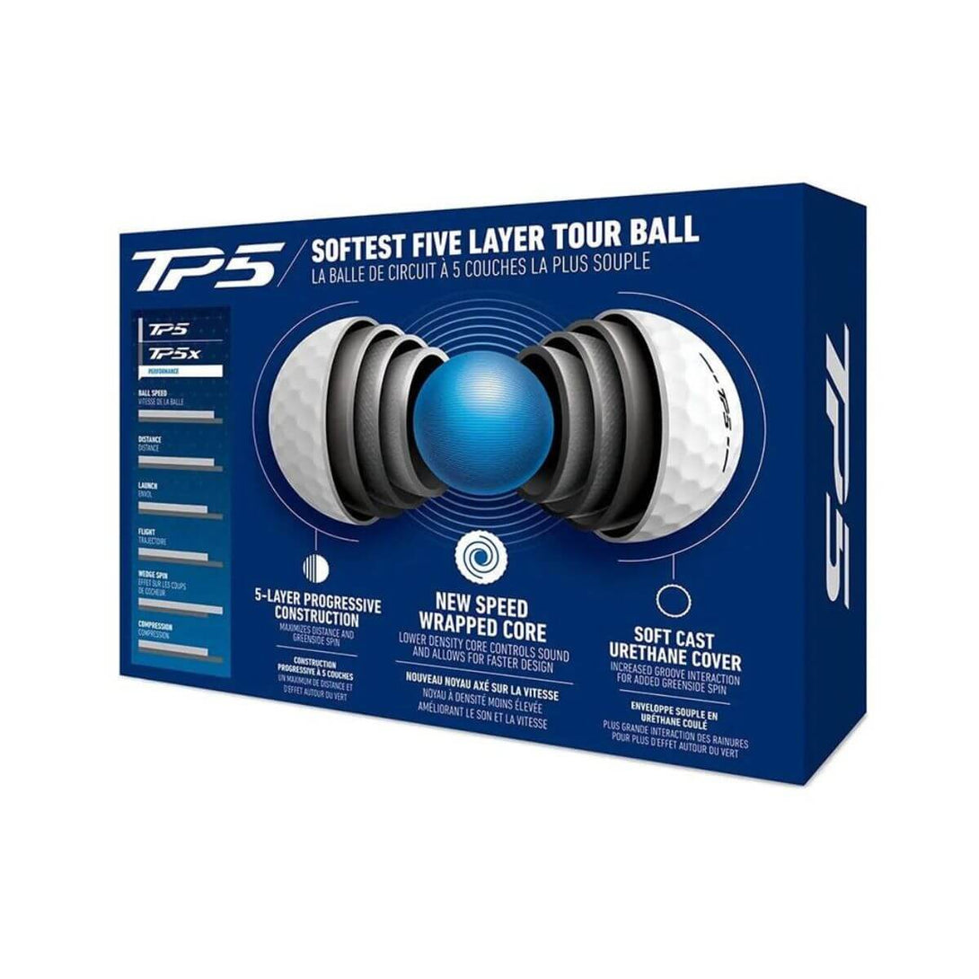 Compared to TP5x, TP5 offers lower compression, lower launch, and more wedge spin to help improve your short game—ultimately, TP5 provides a more workable golf ball with softer feel.