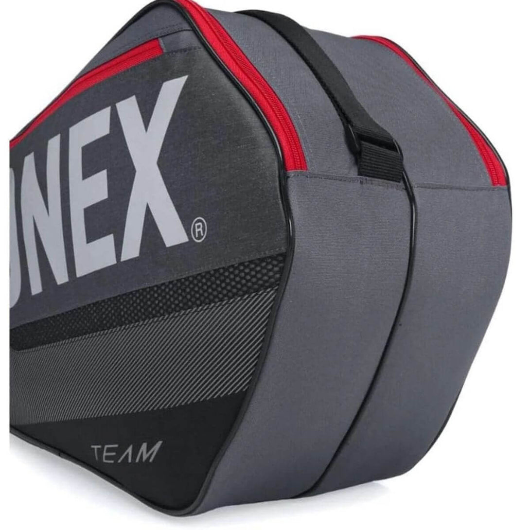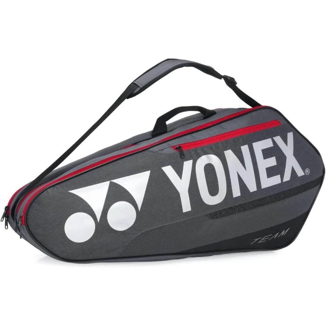 The Yonex BA42126EX Team Racquet Bag in Grayish Pearl is designed for serious badminton and tennis players needing efficient storage and easy transport. With dimensions approximately 75 x 20 x 33.5 cm, this spacious bag holds up to 6 rackets comfortably within two large compartments. A separate medium pouch keeps miscellaneous accessories organized, while a dedicated shoe pocket helps isolate shoes and ventilate gear to prevent odors. Constructed from 100% durable polyester, the bag is built for long-lasting use and is equipped with reliable YKK zippers. Adjustable shoulder straps and a hand carry option provide comfortable carrying flexibility from court to practice sessions or tournaments. Its modern grayish pearl color gives it a sleek, professional look suitable for men and women.